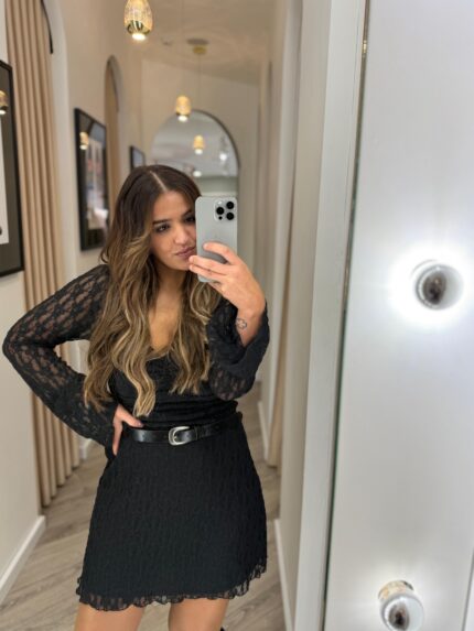 Com mangas compridas, decote redondo e forro interior suave, garante conforto e liberdade de movimento sem comprometer a elegância. O comprimento alongado realça a silhueta e torna a peça perfeita para ocasiões especiais ou coordenados de outono-inverno mais requintados.