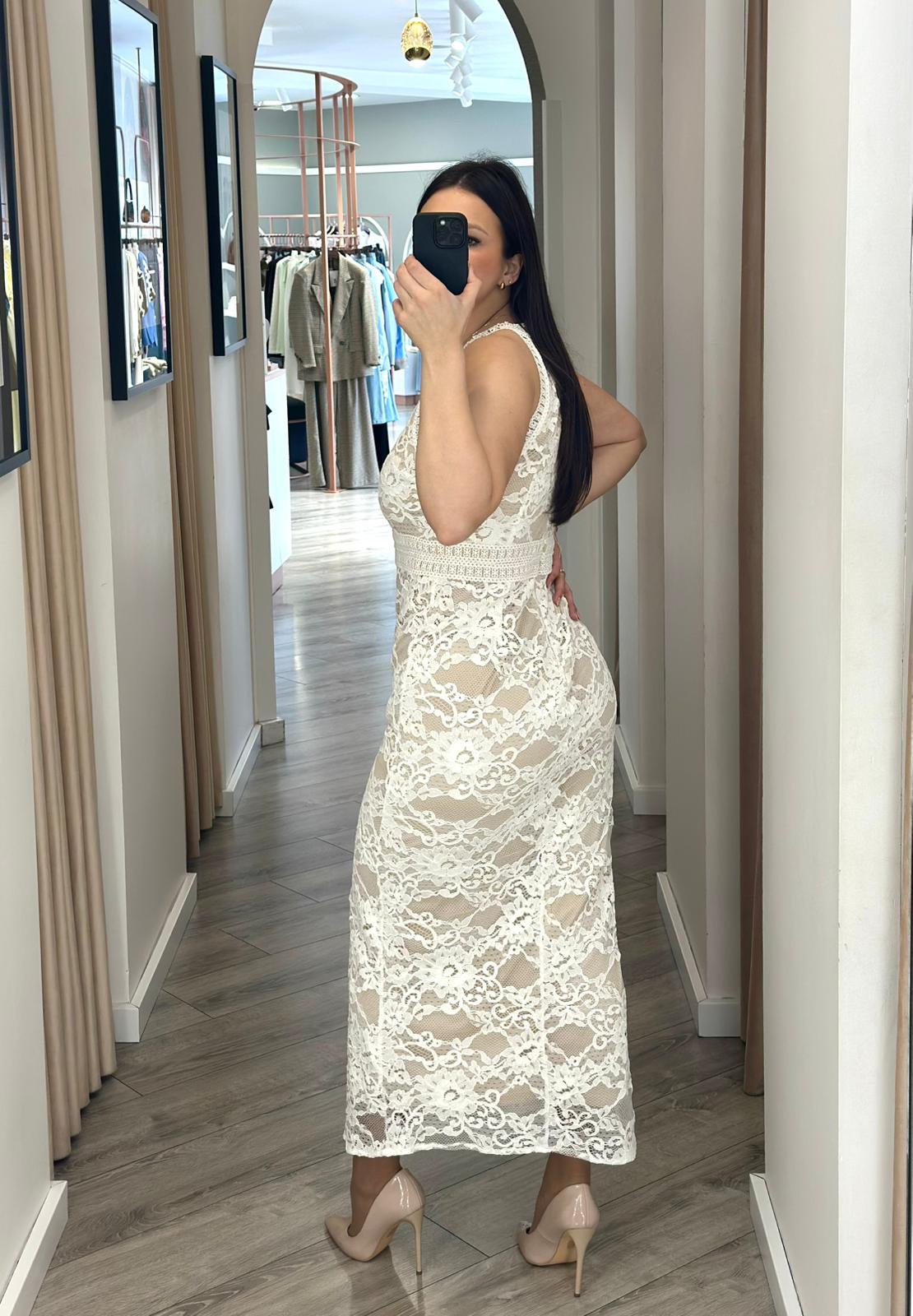 VESTIDO COMPRIDO EM RENDA BRAN