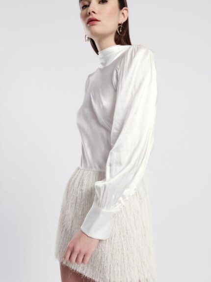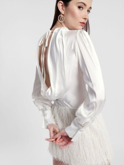 VESTIDO PÉROLA COM FRANJAS E COSTAS ABERTAS DIXIE