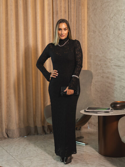 VESTIDO PRETO COMPRIDO EM RENDA MISS YOU