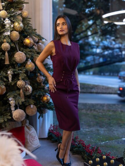 VESTIDO BORDÔ COM MANGAS TRANSPARENTES RINASCIMENTO