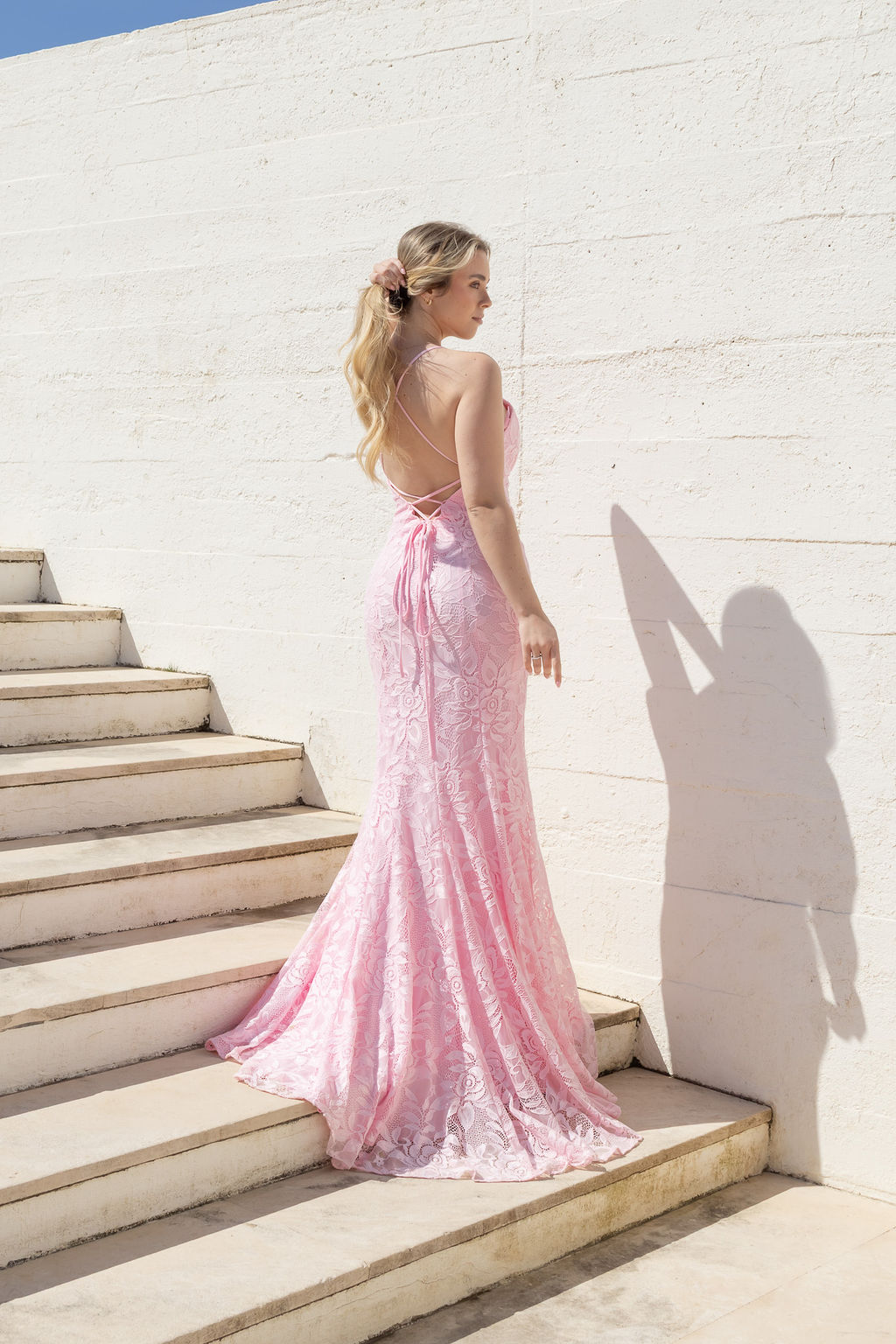 VESTIDO COMPRIDO ROSA RENDADO PONTO CHIC