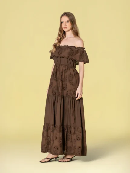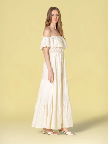 VESTIDO CREME COM FOLHOS LANÇA PERFUME