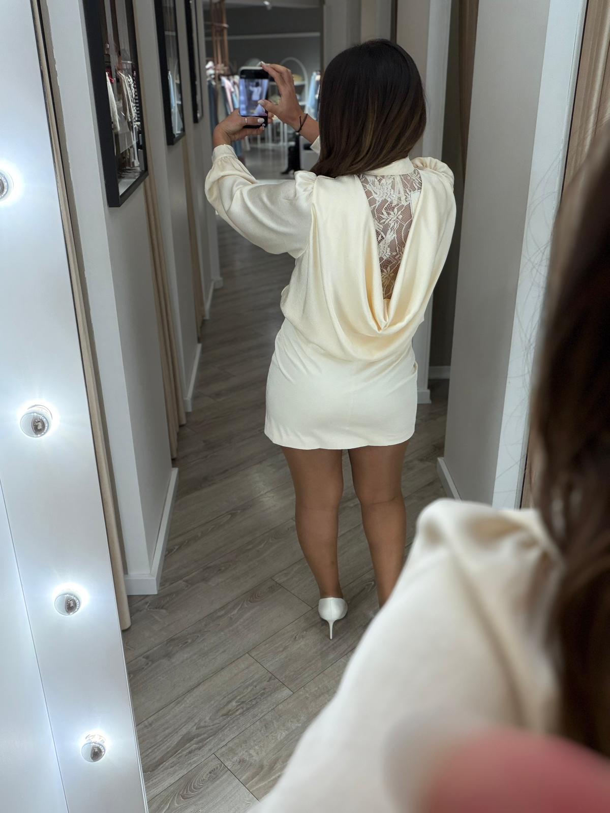 VESTIDO CURTO BEGE COM RENDA NAS COSTAS PONTO CHIC