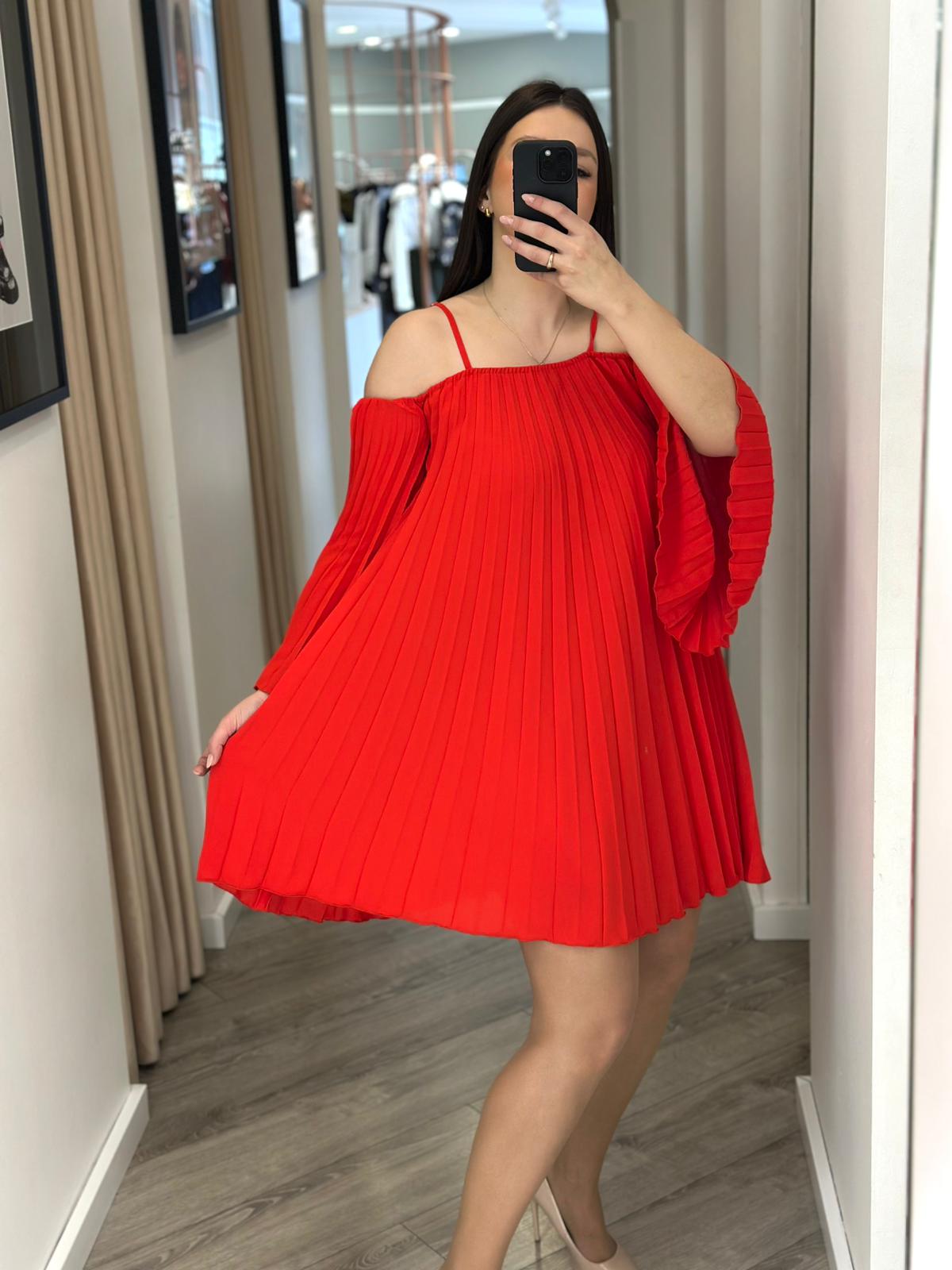 VESTIDO CURTO VERMELHO PLISSADO COM ALÇAS FINAS RINASCIMENTO