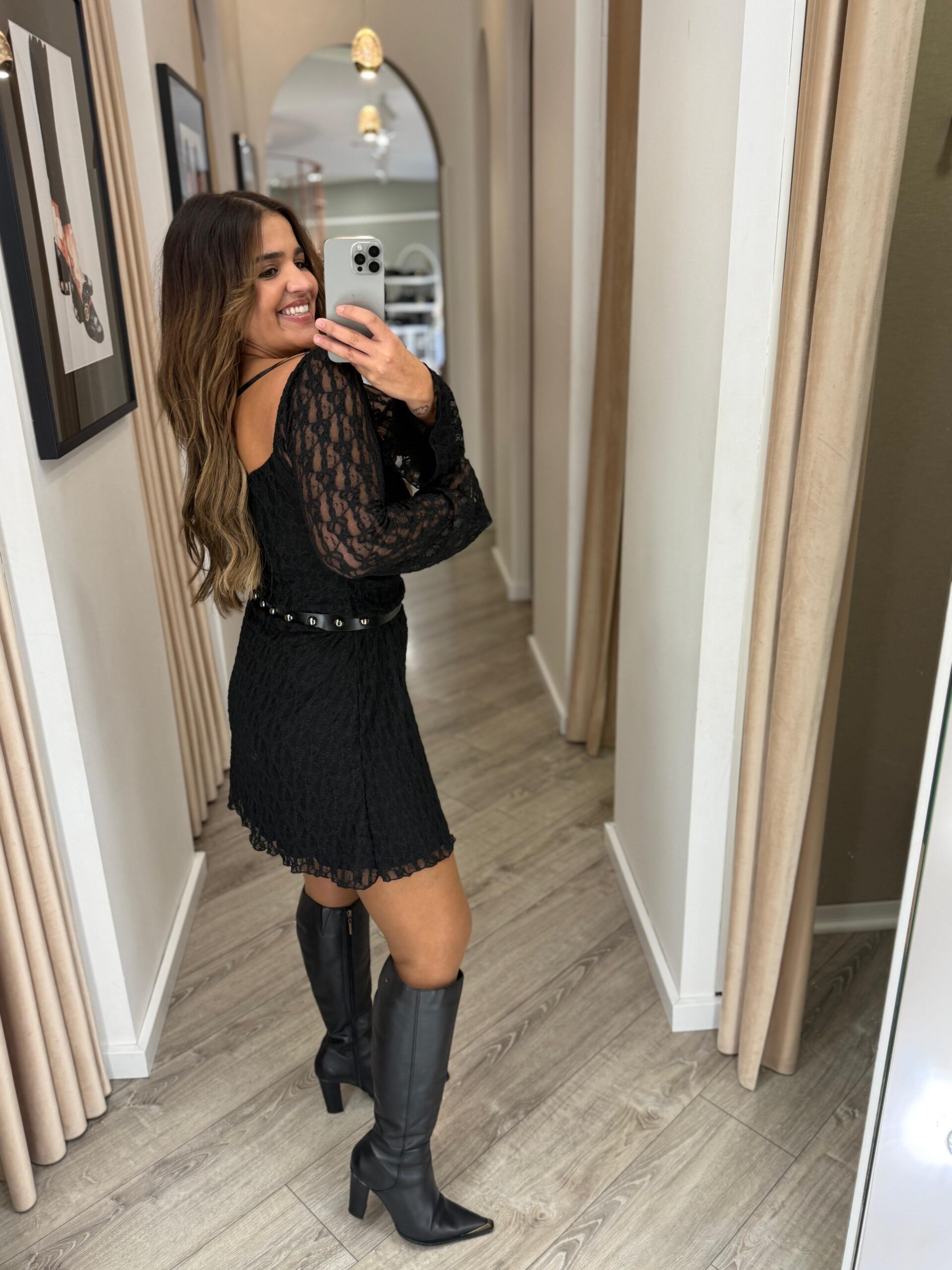 Ideal para jantares, eventos especiais ou noites elegantes, o vestido de renda preto Ponto Chic é uma escolha versátil e intemporal — combina na perfeição com saltos altos e acessórios dourados para um look de impacto, ou com botas e casaco de pelo para um estilo mais ousado de inverno.