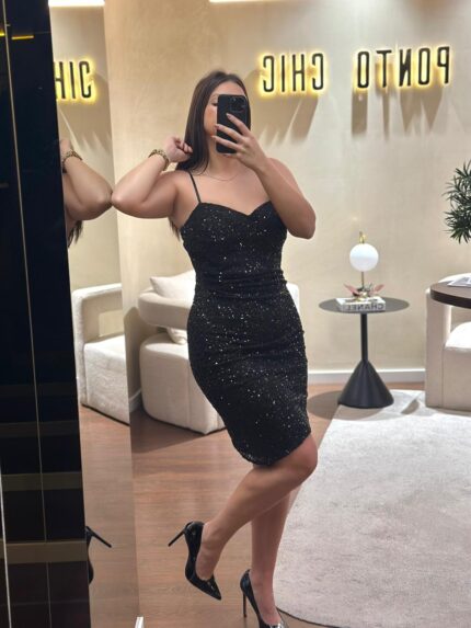VESTIDO PRETO DE LANTEJOULAS RINASCIMENTO