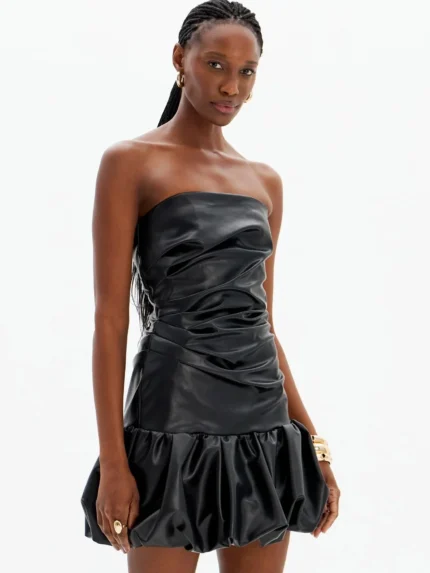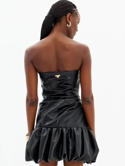 VESTIDO CURTO EM POLIPELE PRETA COM DRAPEADOS LANÇA PERFUME