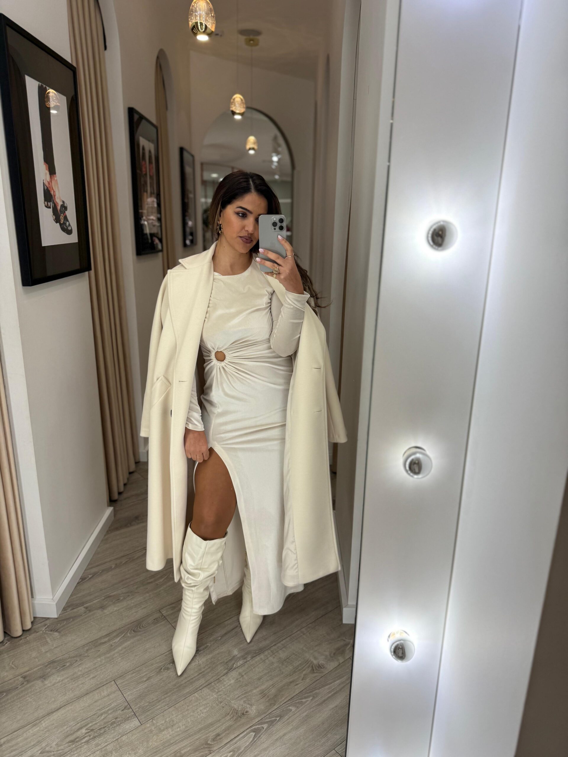VESTIDO EM VELUDO BEGE COM ARGOLA DIXIE