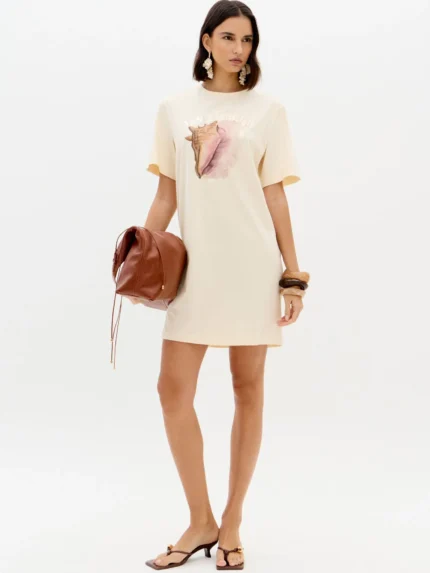 VESTIDO MIDI BEGE OMBRO A OMBRO LANÇA PERFUME