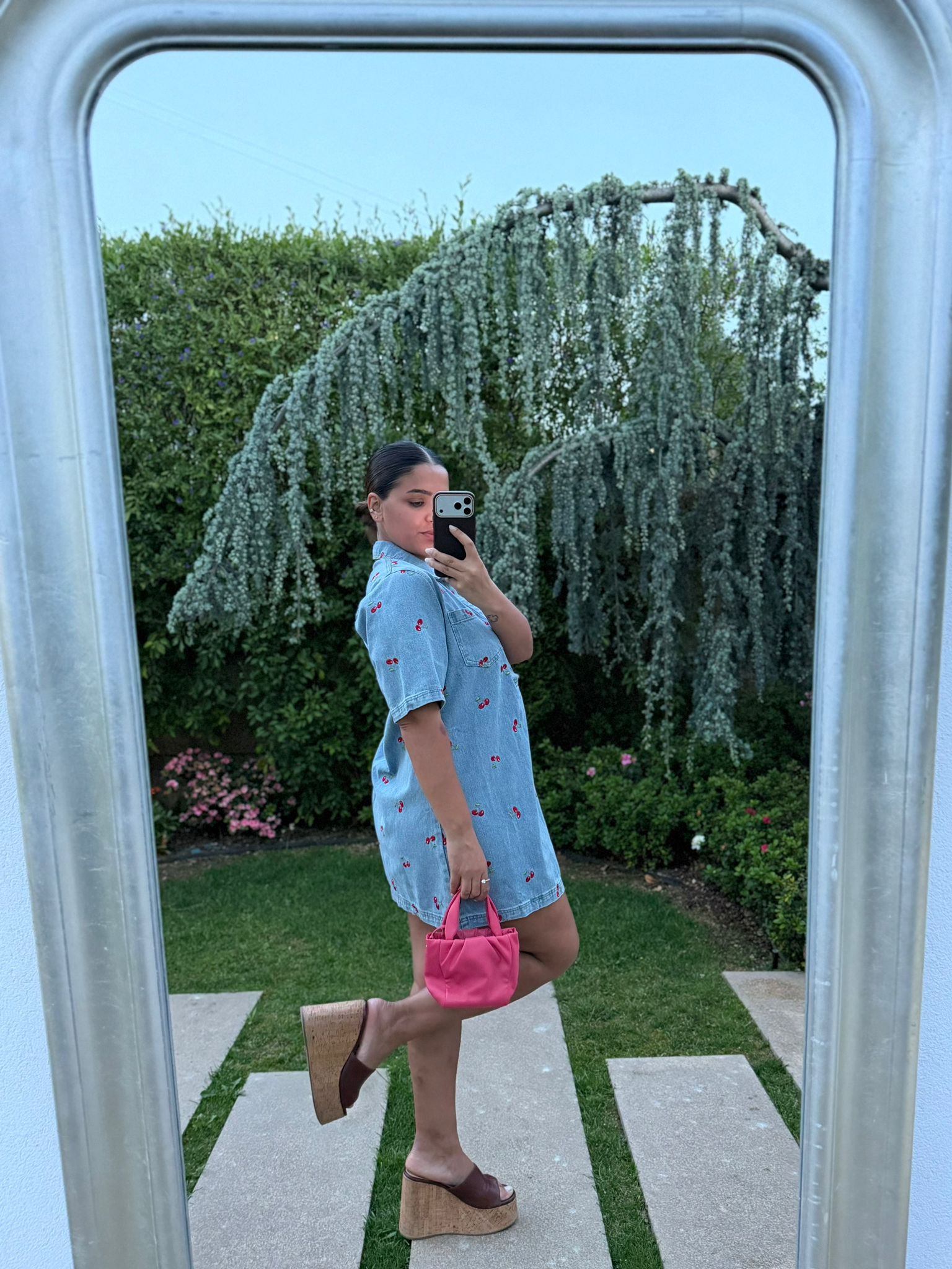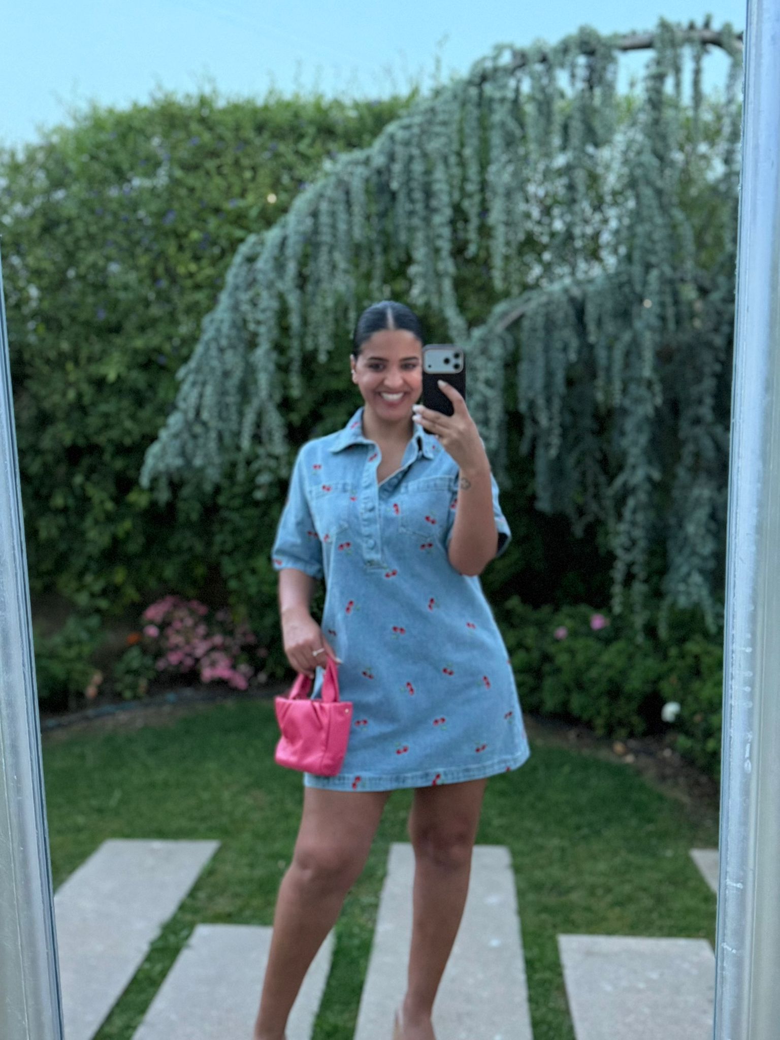 Apresenta um padrão bordado de cerejas que acrescenta um toque divertido e feminino à peça, tornando-a diferenciadora e cheia de personalidade. O colarinho clássico e o decote com abertura frontal tipo polo conferem um ar casual-chic, perfeito para um estilo descontraído mas cuidado.