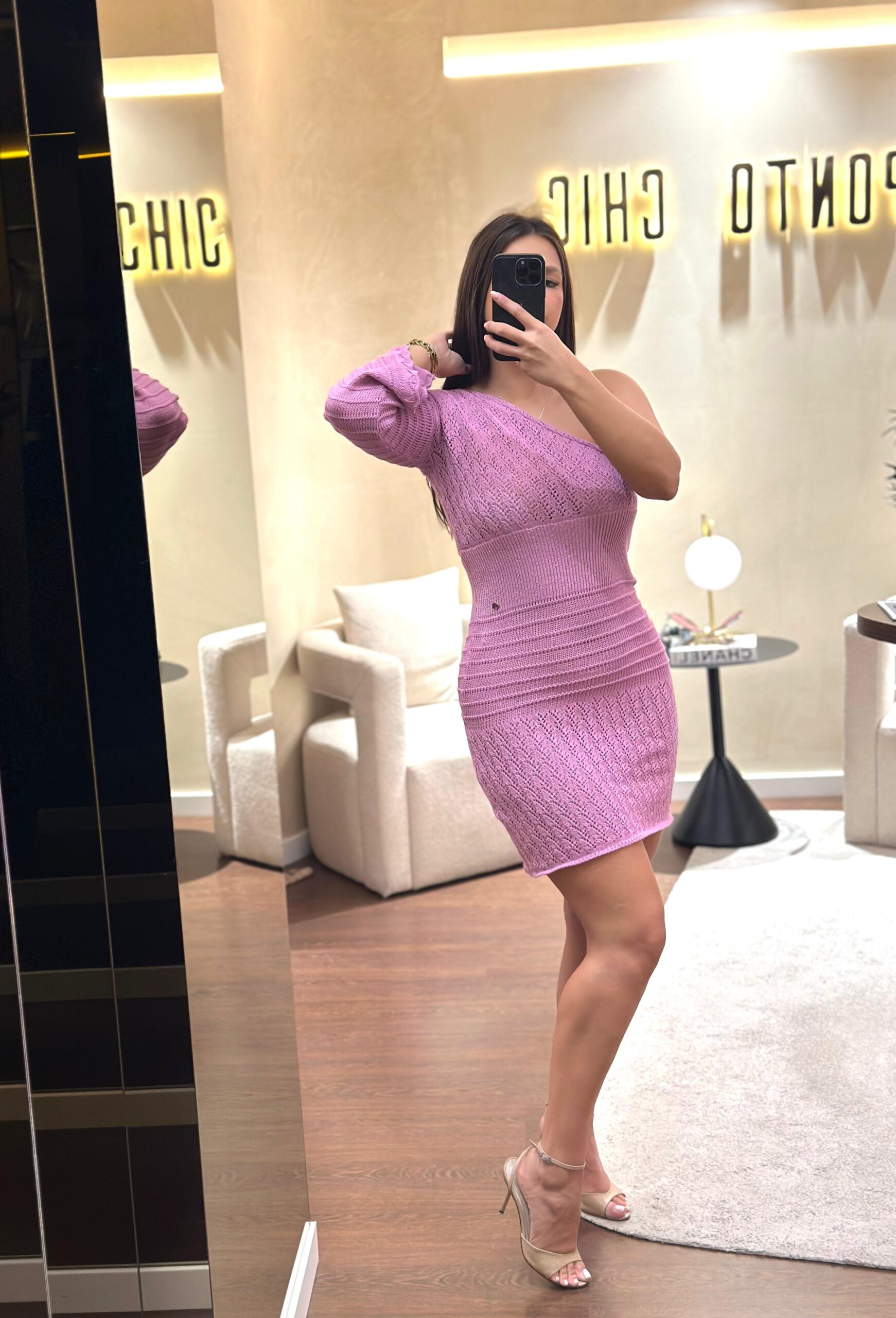 VESTIDO LILÁS EM MALHA RENDADA COM FIO LUREX MISS YOU