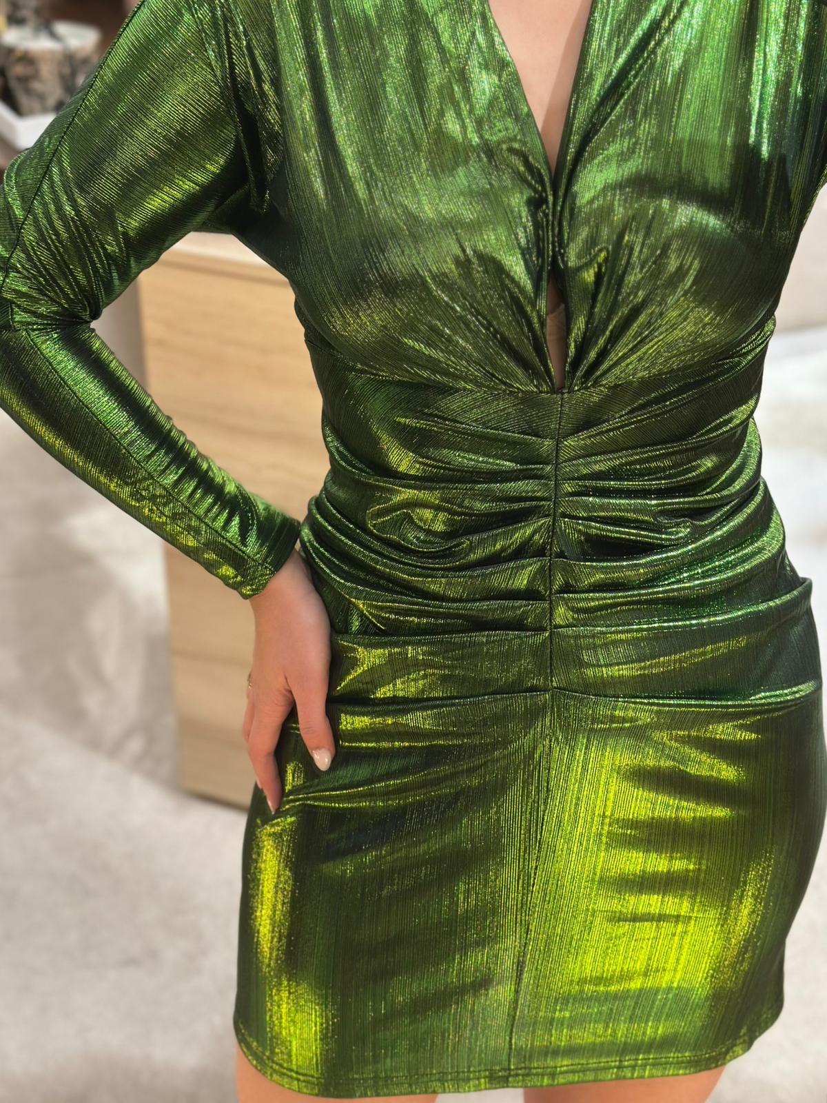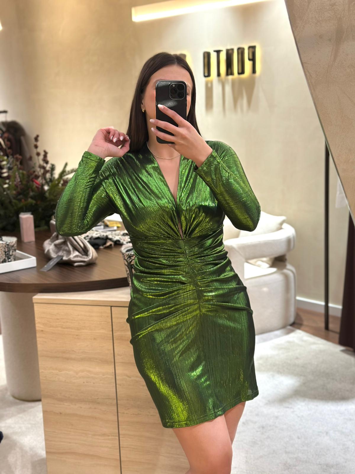 VESTIDO METÁLICO VERDE DRAPEADO PONTO CHIC