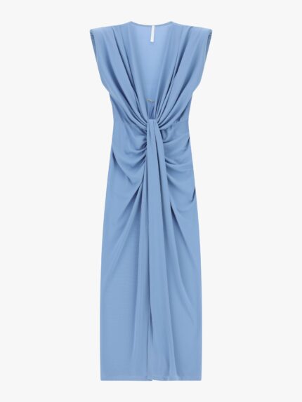 VESTIDO MIDI AZUL CELESTE DRAPEADO COM NÓ FRONTAL IMPERIAL