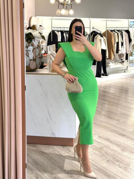 Vestido midi elegante e feminino, ideal para ocasiões especiais onde a leveza e o detalhe fazem toda a diferença. Confeccionado em tecido fluido e confortável, com 97% poliéster e 3% elastano, e forro interior 100% poliéster, garante um cair suave, segurança ao vestir e liberdade de movimentos.