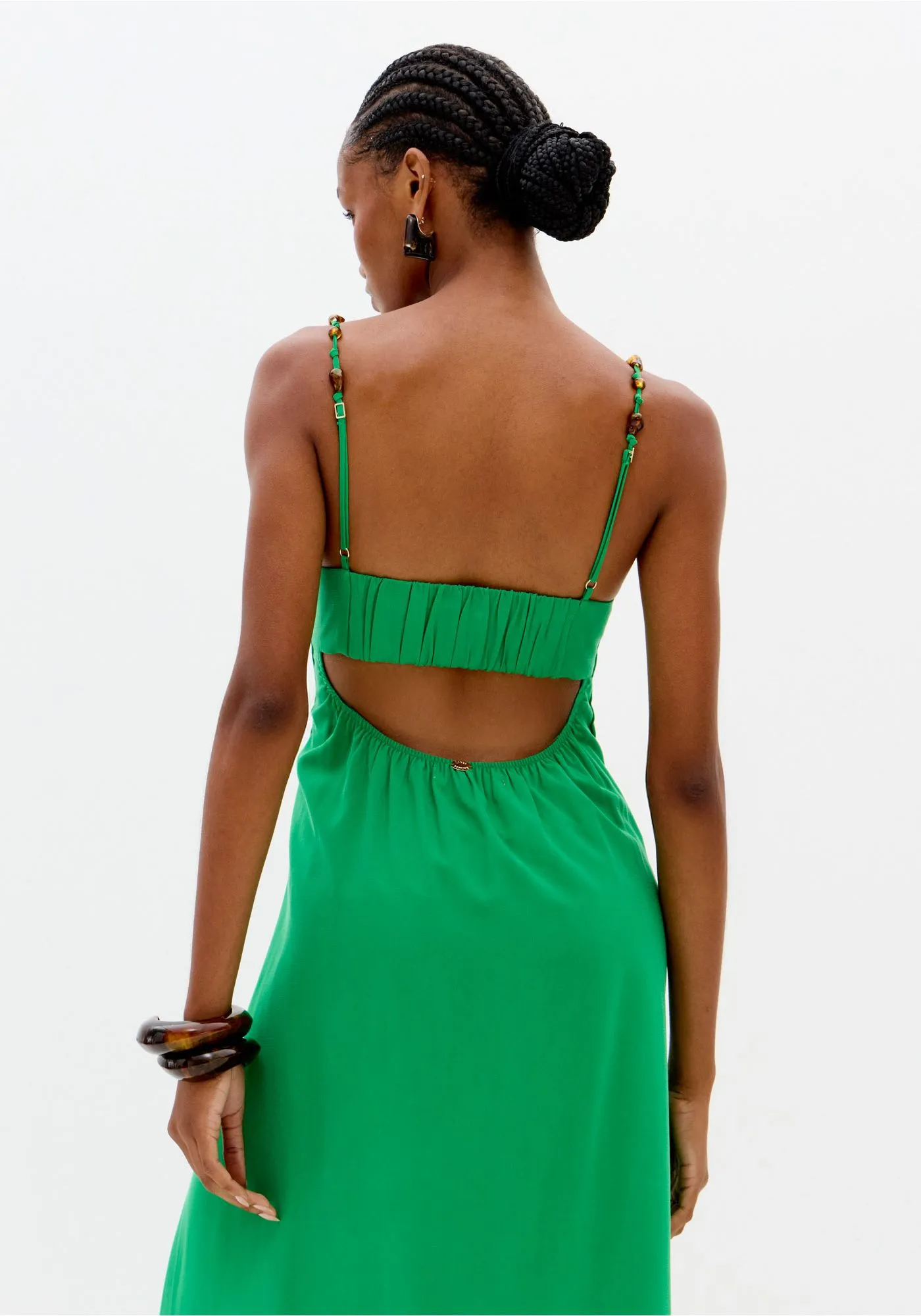 VESTIDO MIDI VERDE COM ALÇAS DE MISSANGAS LANÇA PERFUME