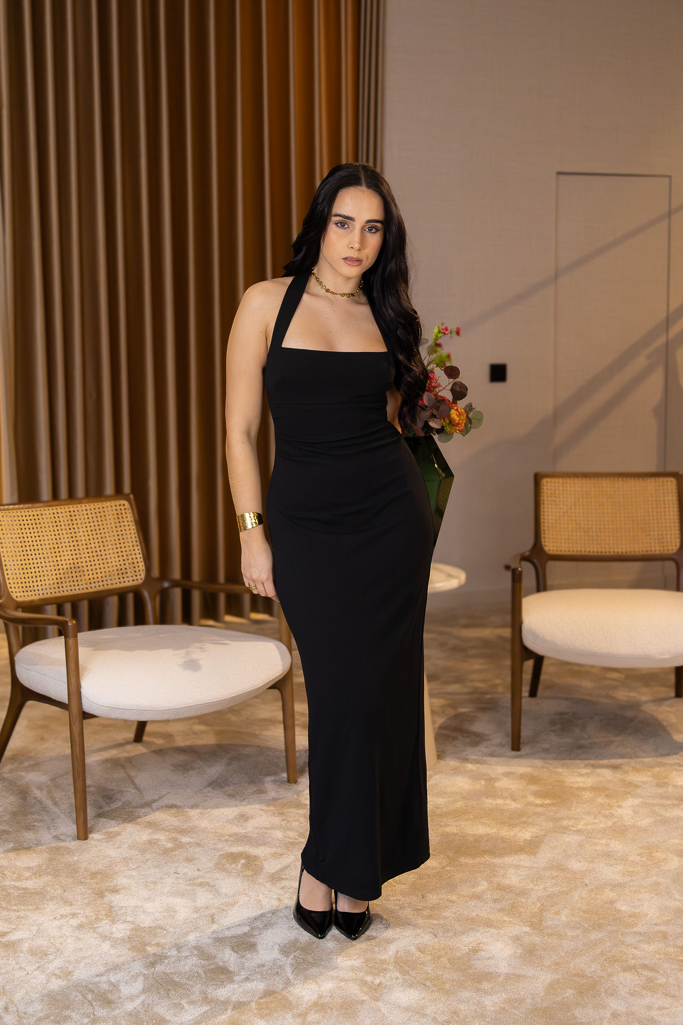 Um vestido que traduz a essência da Ponto Chic: elegância, feminilidade, estrutura e intemporalidade, numa peça forte, segura e de impacto visual.