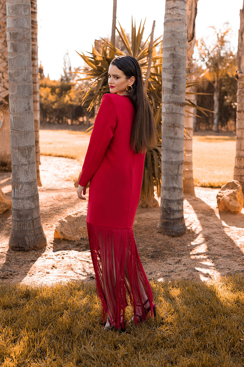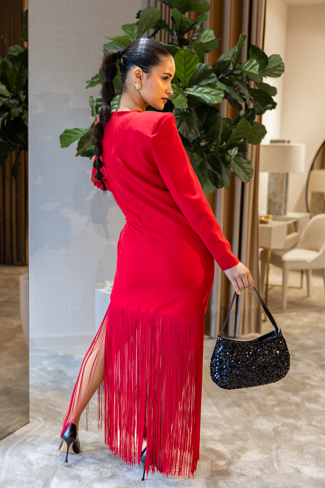 VESTIDO VERMELHO MIDI COM FRANJAS PONTO CHIC