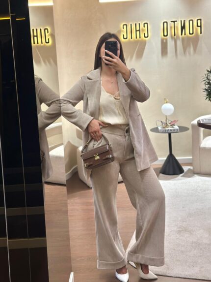 €106.50CALÇAS PANTALONA EM BOMBAZINA BEGE MISS YOU