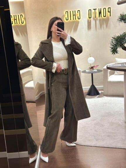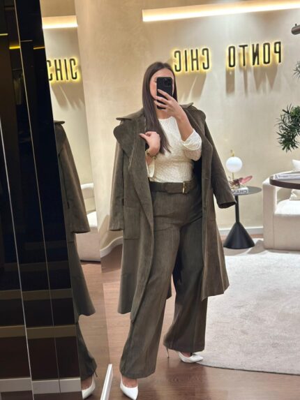 CALÇAS BOMBAZINE CASTANHAS COM DETALHE NO CINTO MISS YOU