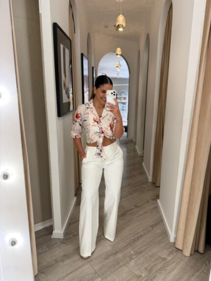 €72.50CALÇA DE ALFAIATARIA BRANCA COM VINCO FERRACHE