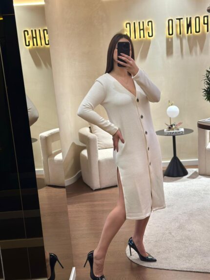 €96.50VESTIDO CARDIGAN EM MALHA OFF-WHITE COM BOTÕES MISS YOU
