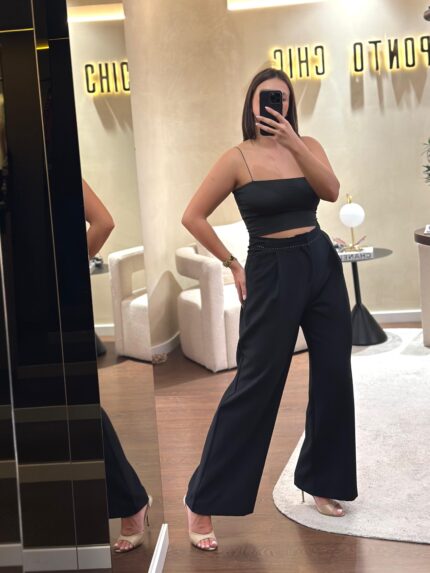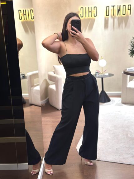CALÇA PRETA PANTALONA COM PINÇAS ELEH