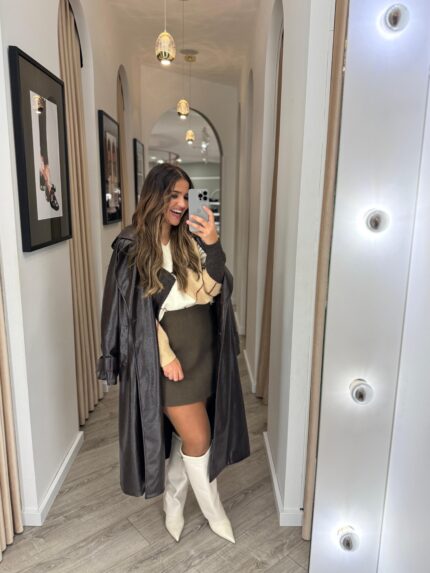 TRENCH COAT EM ECOPELE CASTANHO PONTO CHIC