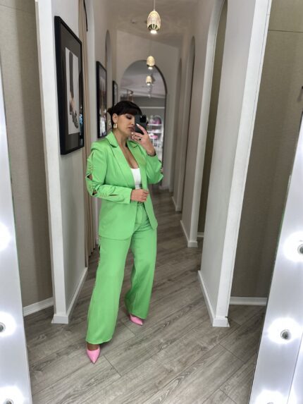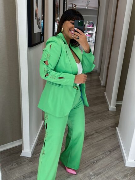CALÇA VERDE ACETINADA COM DETALHE METÁLICO LOCOLUXO