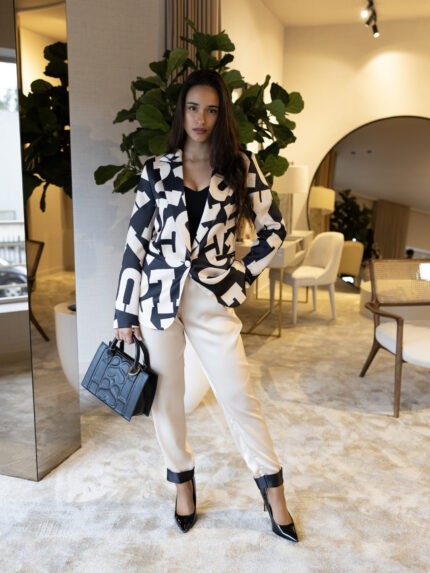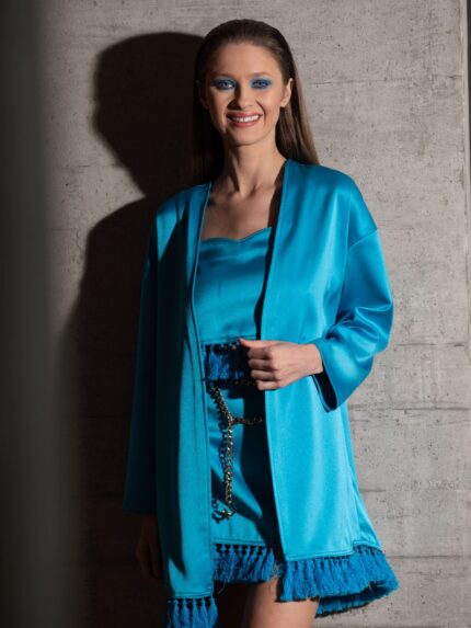 CASACO AZUL COM LOGO E FRANJAS LOCOLUXO