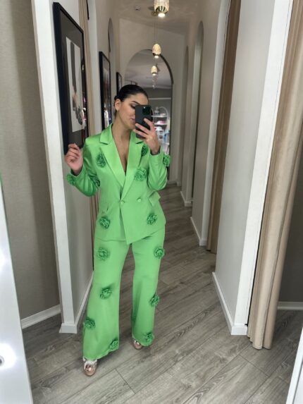 CALÇA VERDE COM APLICAÇÕES FLORAIS LOCOLUXO