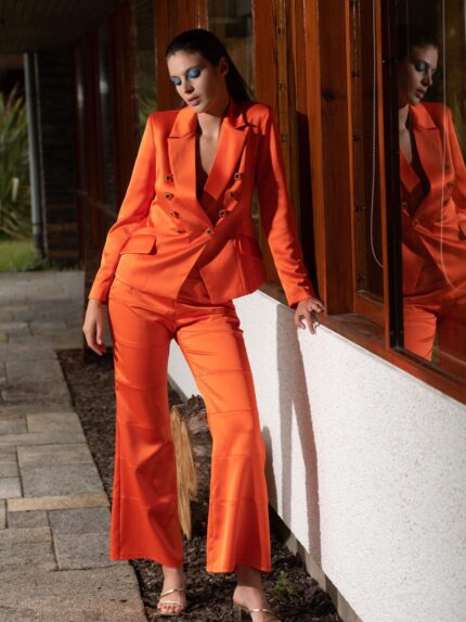 CALÇA LARANJA ACETINADA COM DETALHE COSTURAS LOCOLUXO