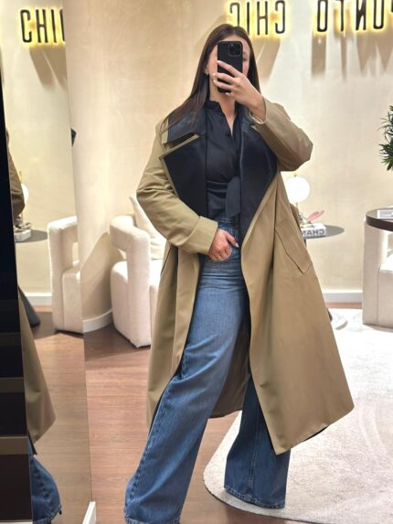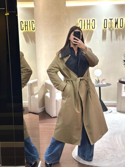 €139.90TRENCH BEGE COM GOLA CONTRASTANTE PRETA ELEH