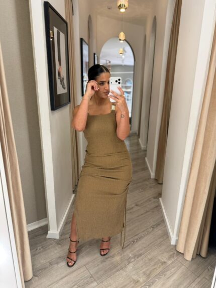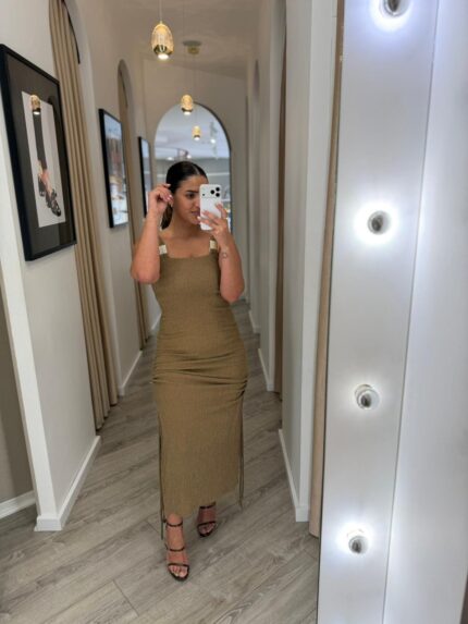 €86.50VESTIDO MIDI CASTANHO COM ALÇAS E DETALHE METÁLICO MISS YOU