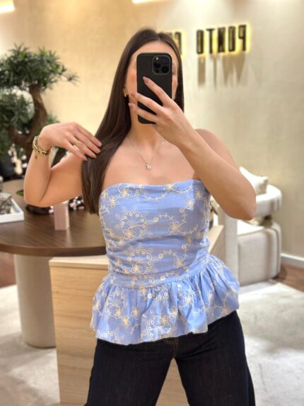 TOP BRANCO ESTILO BLAZER COM FIVELAS LANÇA PERFUME