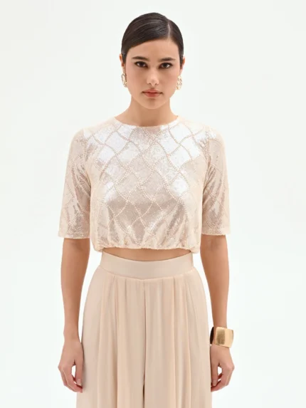 TOP CURTO DOURADO COM LANTEJOULAS RINASCIMENTO