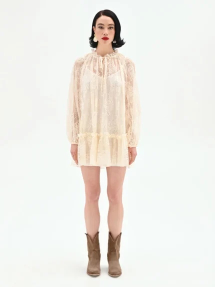 VESTIDO EM RENDA BEGE RINASCIMENTO