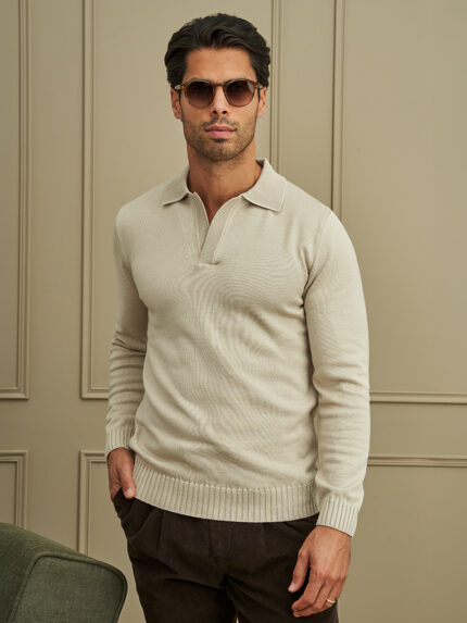PÓLO TRICÔ COM DECOTE EM V TAUPE ZOLF