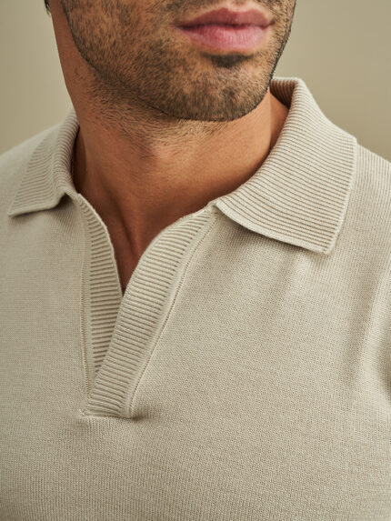 PÓLO TRICÔ COM DECOTE EM V AREIA ZOLF