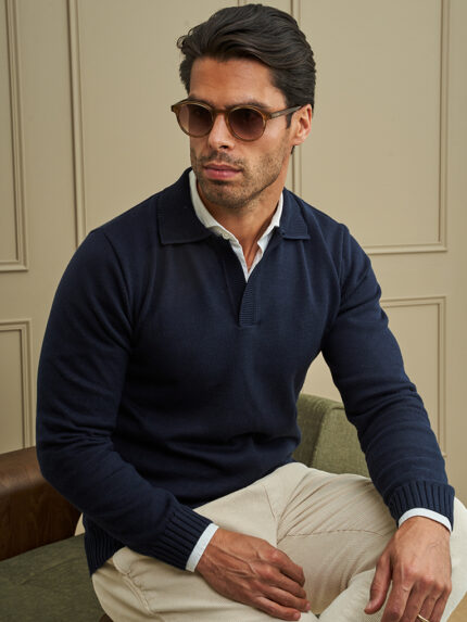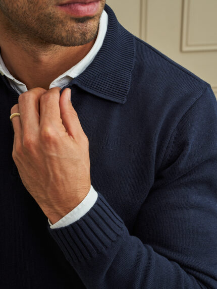 PÓLO TRICOT COM DECOTE EM V AZUL ZOLF