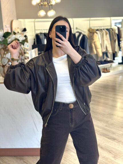 CASACO CASTANHO EM ECOPELE COM CAPUZ IMPERIAL