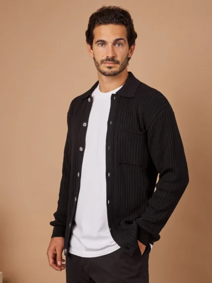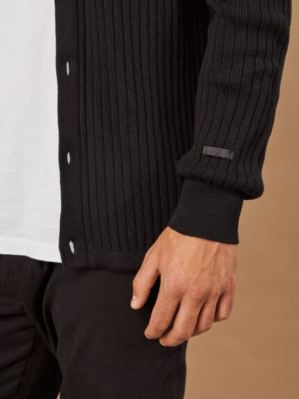 CASACO TRICOT CANELADO COM BOLSO PRETO ZOLF