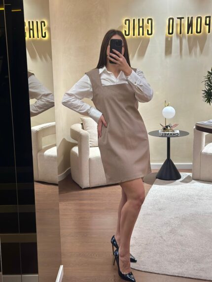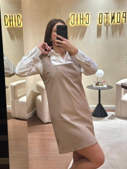 €189.90VESTIDO CURTO BEGE COM FOLHOS ELEH