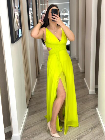 VESTIDO LONGO VERDE LIMA COM DECOTE EM V PONTO CHIC